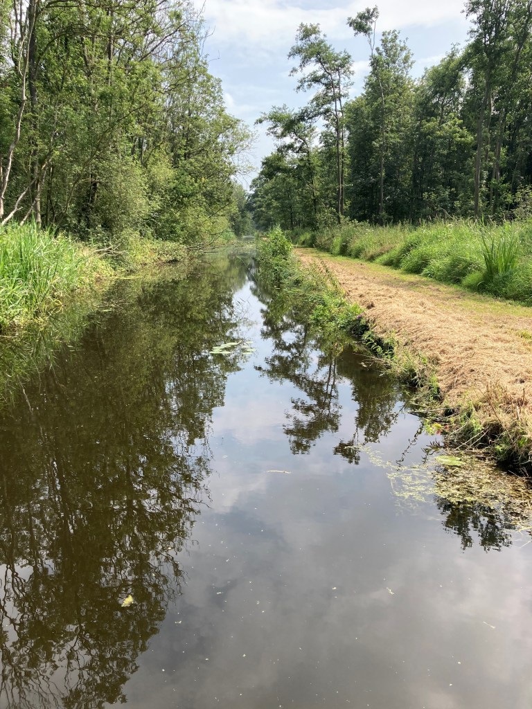 Tot slot liepen we door een avontuurlijk paadje (brandnetels, bramenstruiken en geen pad te zien) waarbij ik blij was dat ik mijn wandel-afritsbroek aan had. Het was namelijk warm weer en ik twijfelde ’s ochtends of niet gewoon een korte broek aan zou doen.