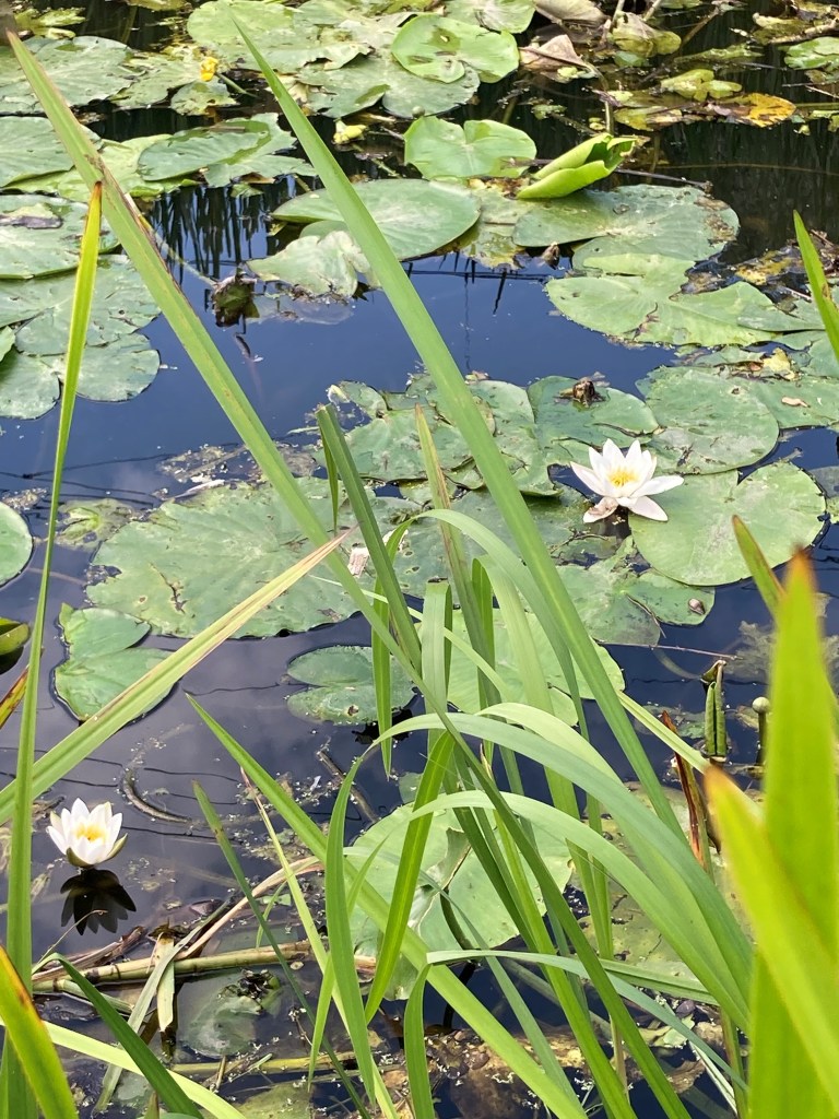 We kwamen over kleine kronkelpaadjes langs een watertje dat helemaal vol stond met waterlelies. We zagen koeien, een ooievaar, kikkers en een opgegeten konijntje. Alleen zijn ene pootje met wat vlees eraan en zijn darmkanaal wat verspreid over de weg lag, was van hem overgebleven. De natuur is vaak gruwelijk.